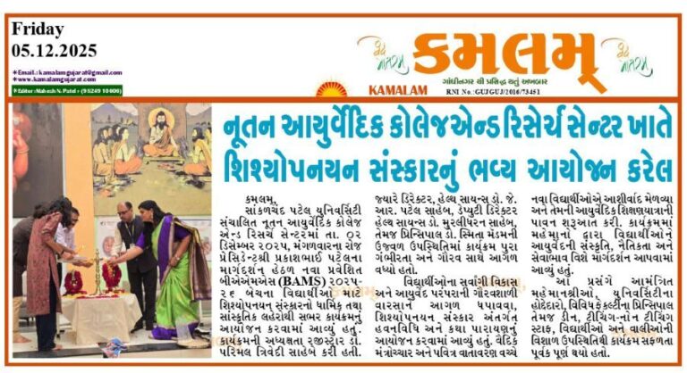 નૂતન આયુર્વેદિક કોલેજ એન્ડ રિસર્ચ સેન્ટરમાં શિશ્યોપનયન સંસ્કારનો ભવ્ય ઉત્સવ