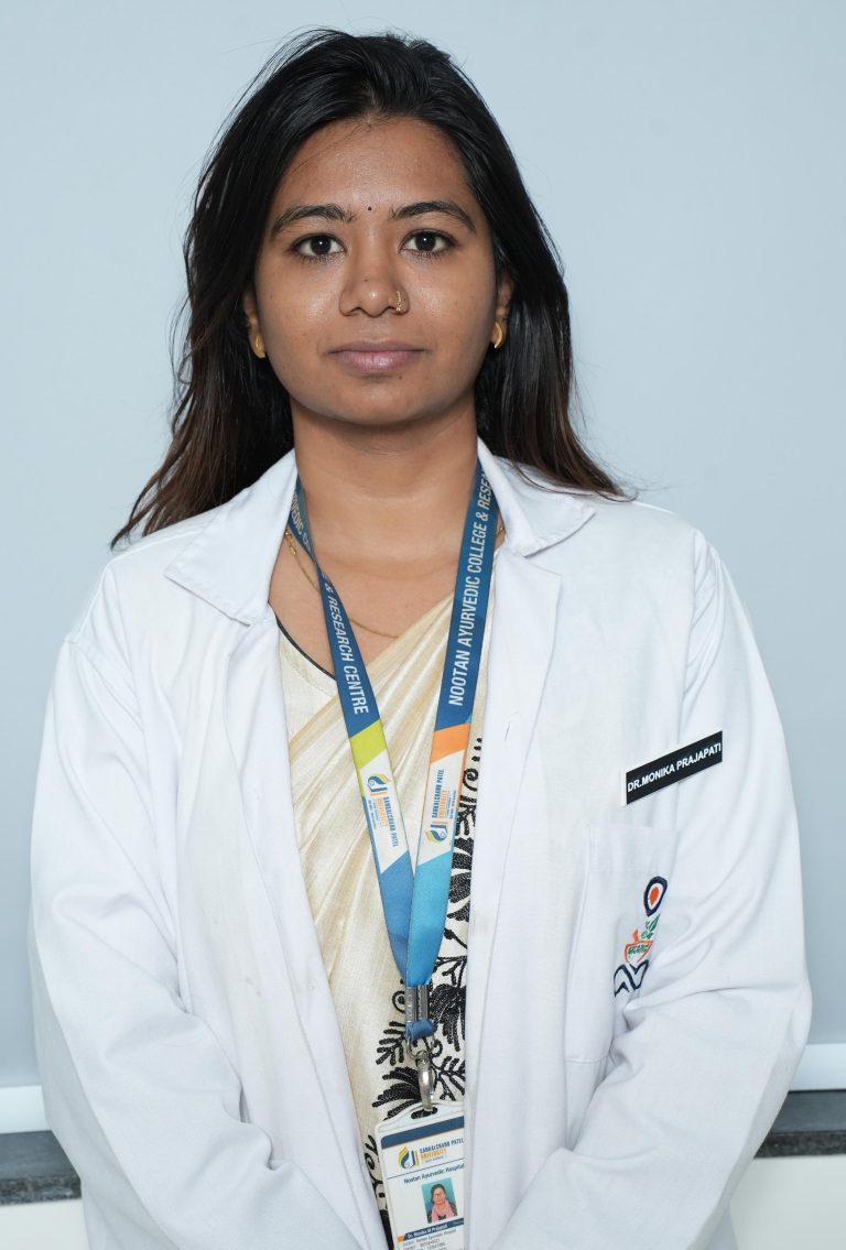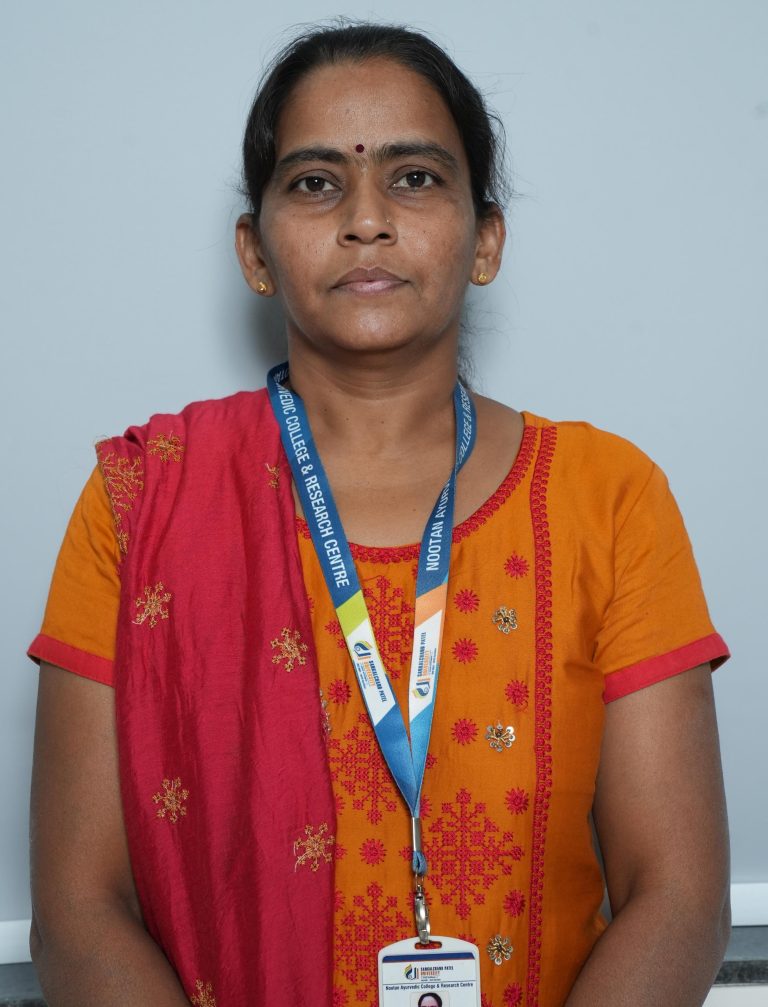 Faculties Teaching-Staff Dr. Smitha (MD – Ayurveda) Principal Click here Dr. Pragalbh M R Associate Professor (Shareera Rachana) Dr. Shreyansh Pachore Professor (Shareera Rachana) Dr. Kalyani Bhusane Professor (Kriya Sharira) Dr. Nisha E B Professor (Samhita Sidhanta) Dr. Sagar Ital Associate Professor (Samhita Sidhanta) Dr. Gayathri B.I Assistant Professor (Samhita Sidhanta) Dr. Vishnu A Assistant Professor (Samhita Sidhanta) Ms. Alpabahen Patel Assistant Professor (Sanskrit) Dr. Lalit Meena Assistant Professor (Kriya Sharira) Dr. Durga Lal Sharma Professor (Agadatantra) Dr. Sreejith K Associate Professor (Agadatantra) Dr. Drakshyani Benni Professor (Dravyaguna) Dr. Rashmi Jain Assistant Professor (Dravyaguna) Dr. Athira Assistant Professor (Swasthwritta) Dr. Parul Kapadiya Professor (Rognidan Avum Vikriti Vigyan) Dr. Meenakshi Manerikar Professor (Rasashastra & Bhaishajya Kalpana) Dr. Namdev Associate Professor (Rasashastra & Bhaishajya Kalpana) Dr. Monika Prajapati Assistant Professor (Rasashastra & Bhaishajya Kalpana) Dr. Dhanraj C Nagar Professor (Swasthwritta) Dr. Ankush G Professor (Swasthwritta) Dr. Avinash Wade Associate Professor (Rognidan Avum Vikriti Vigyan) Dr. Chandni C Pillai Assistant Professor (Rognidan Avum Vikriti Vigyan) Dr. Sneha Assistant Professor (Kaumarabhritya) Dr. Sapna Thakur Assistant Professor (Kayachikitsa) Dr. Poona Nath Chouhan Assistant Professor (Shalya Tantra) Dr. Harshalben R Patel Assistant Professor (Panchakarma) Dr.Yesha Soni Assistant Professor (Prasooti Tantra & Stree Roga) Dr. Renuka Assistant Professor (Shalakya Tantra) Mrs. kinjal abhijeetsinh jadeja Yoga Instructor & Assistant Professor ( Swasthavritta Evam Yoga )